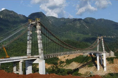 牡丹江市西十一條路跨江大橋工程,全橋長(zhǎng)約1740米,主橋?yàn)樽藻^式懸索橋,南北引道...